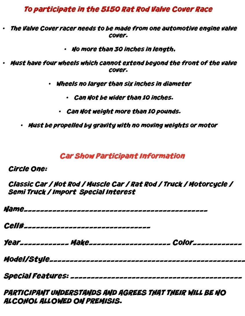Car Show | Valve Cover Races | Hand Crafted Trophies | $35 Day of Event - Pay at the Gate