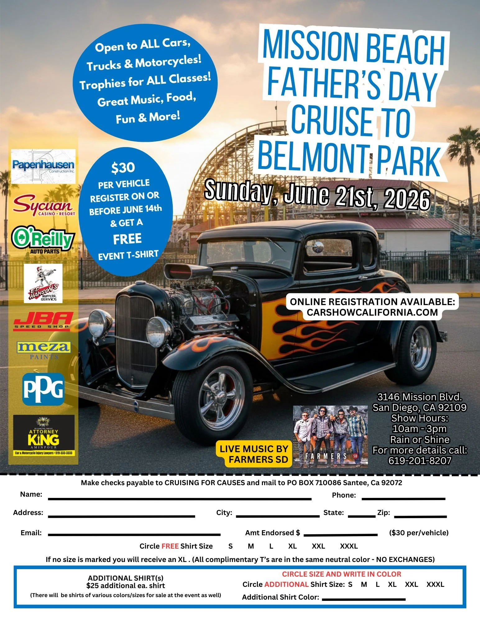 To Register ONLINE CLICK HERE | $35 per vehicle. Register ON or BEFORE June 14th, and get a FREE Event TShirt! Open to ALL year, make, model vehicles!