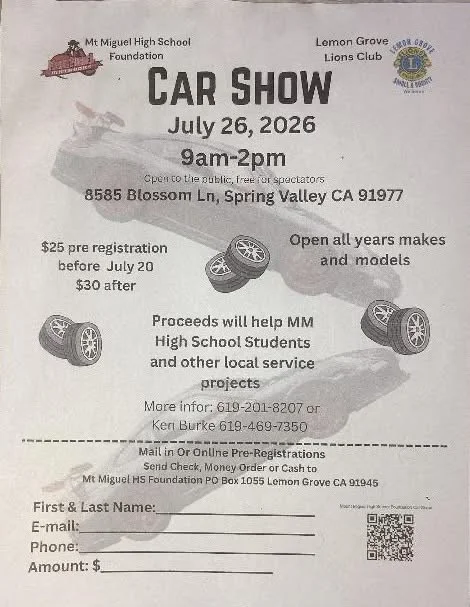 Location: Mt. Miguel High School Upper Parking lot - 8585 Blossom Ln, Spring Valley, CA 91977